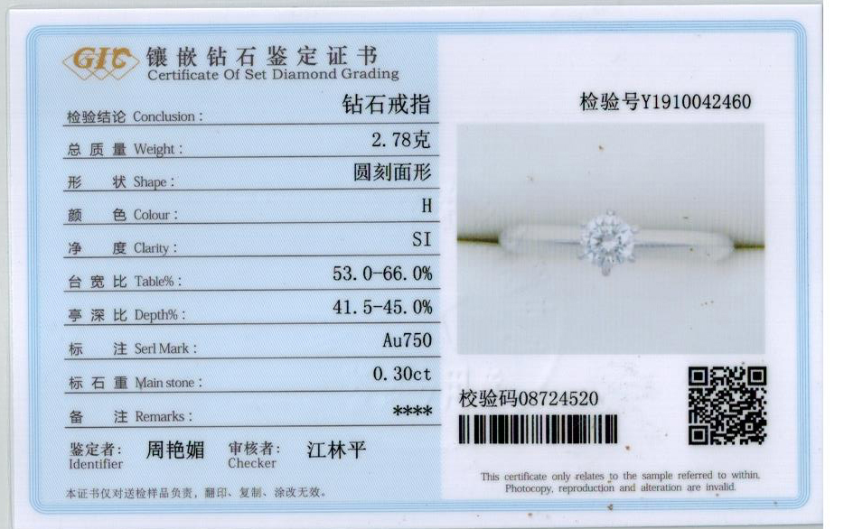 0.30ct 钻石 H SI